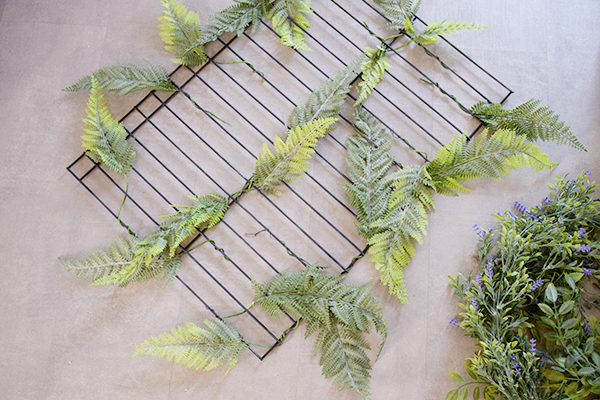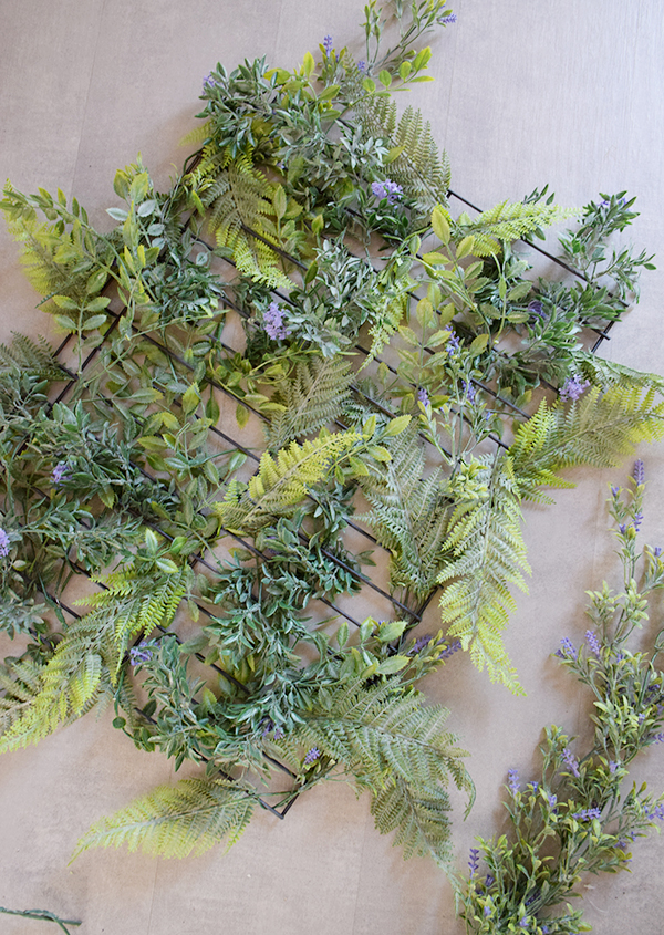 Posteriormente coloqué todas las plantas colgante con flor por toda la rejilla distribuyendo bien para tapar el máximo posible.