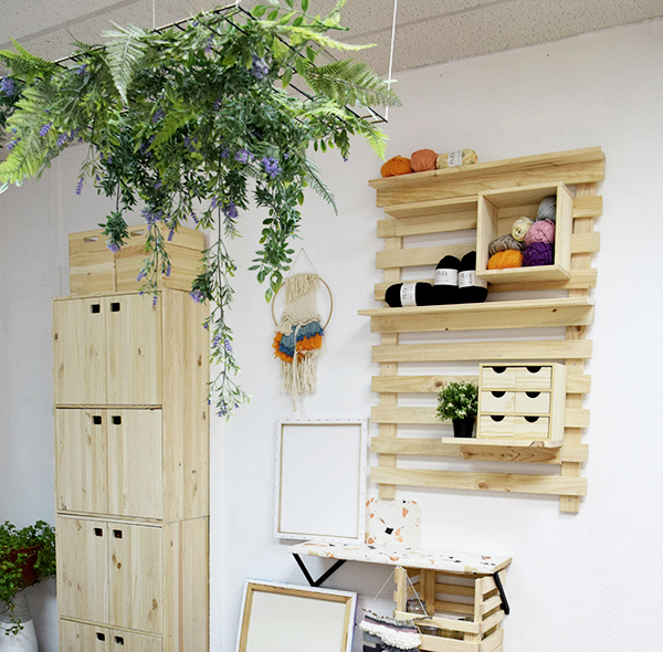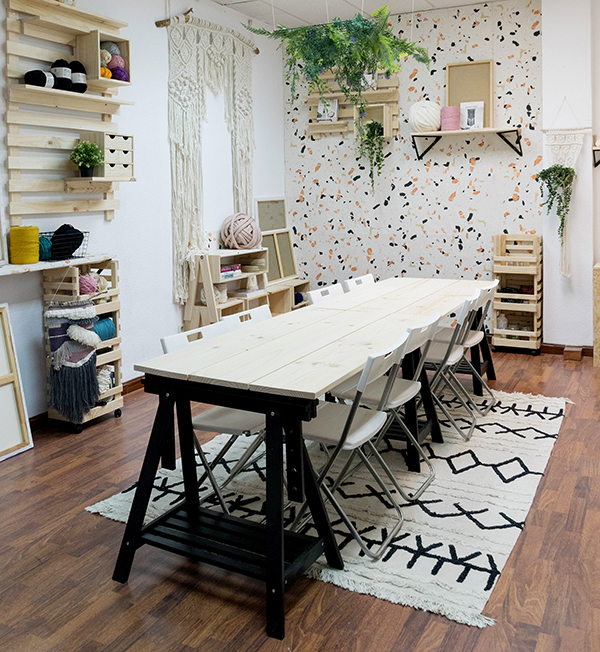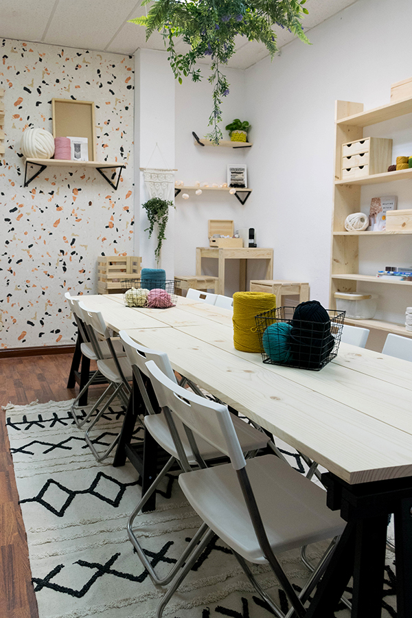 Y como habéis podido comprobar las personas que me seguis y habeis visto algun video por mis redes sociales de este espacio, el taller ha cambiado totalmente, pero en el próximo post os cuento todo en mas detalle… como conseguimos disimular una pared de gotelé con un papel de pared y como hemos cambiado todo el mobiliario…. y por su puesto las fotos del antes y después que tanto gustan!! 😉