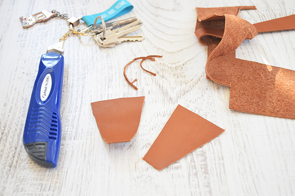 Tomaremos como medida unas llaves y sobre eso recortaremos dos piezas iguales en forma de embudo. No dejéis que sobre mucha piel, cuanto mas pretitas entren las llaves mejor!