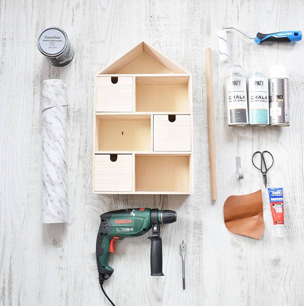 – Pinturas, sprays varios, vinilo mármol (todo lo que se nos ocurra para personalizar la casita)