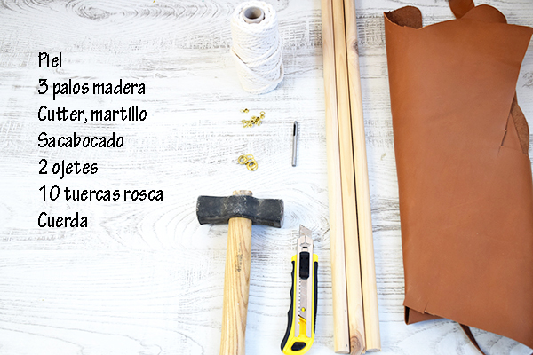 Muchas me habéis preguntado por el toallero de mi baño y os he explicado por stories como hacerlo, este se parece mucho, pero en vez de usar la cuerda para unir los palos de madera, usaremos piel. Tomad nota: