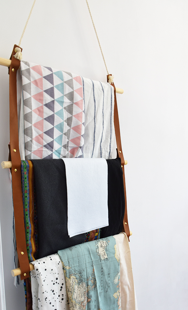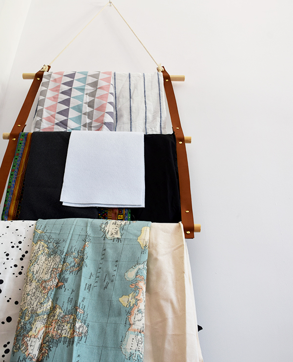 Así que una vez mas, la necesidad y el ingenio han hecho que realice este DIY de un perchero para mis telas, de esta forma tendré siempre a la vista las telas y bien ordenadas.