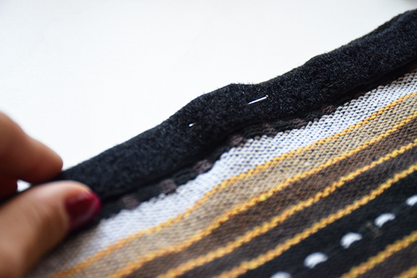 Crearemos una especie de tapa para cerrar un lateral de nuestra “bolsa o saco” que fijaremos con pegamento textil para después coser mas fácilmente a máquina.