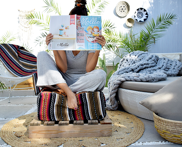 Al terminarlo me di cuenta de las posibilidades que tenía debido a la espuma que había escogido, que al ser en bloques es super estable y sirve de mesita central. Como podeis ver en las fotos es ideal para un desayuno bonito, como asiento o reposa pies. Con que opción os quedáis??