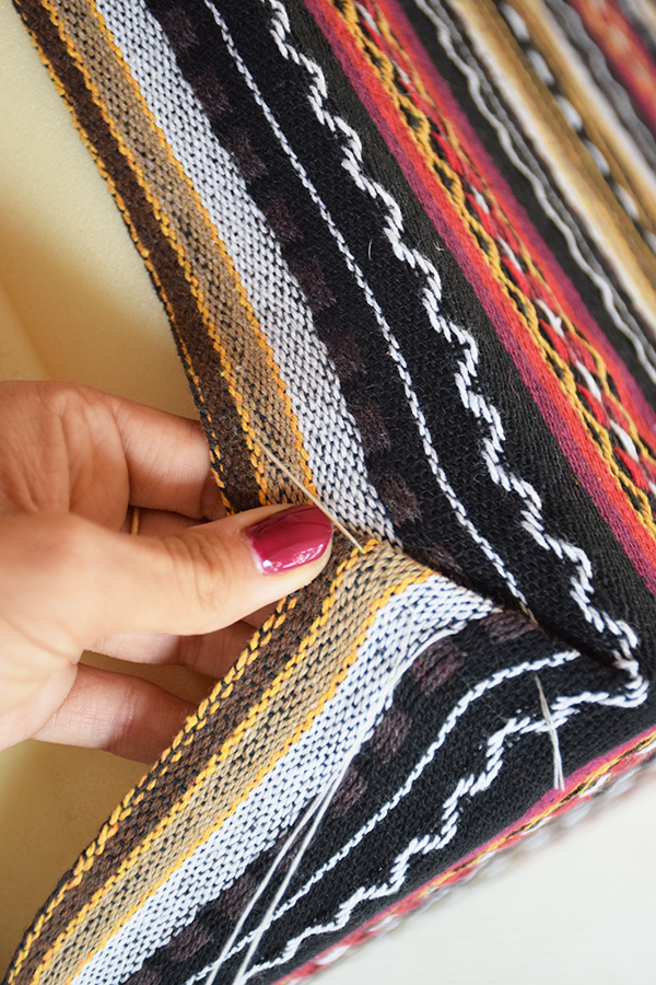 Ah y con la tela que me sobró me hice un plaid decorando los bordes con una tira de madroño negro.