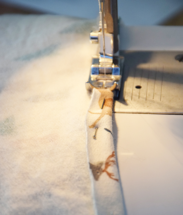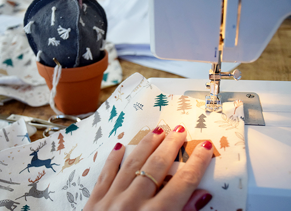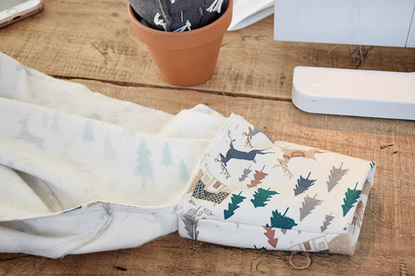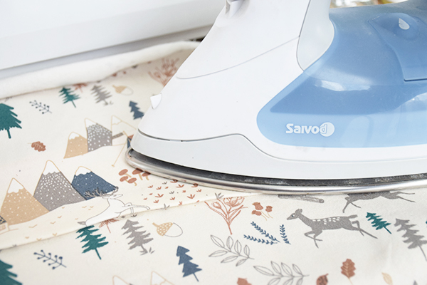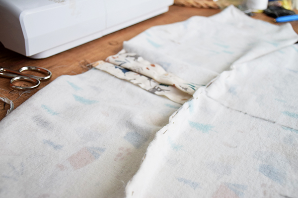 Pasamos a unir las tres piezas delanteras, fijándolas bien con alfileres y cosemos. Después creamos un dobladillo con la plancha para poder coser nuevamente como marca el patrón.