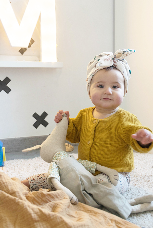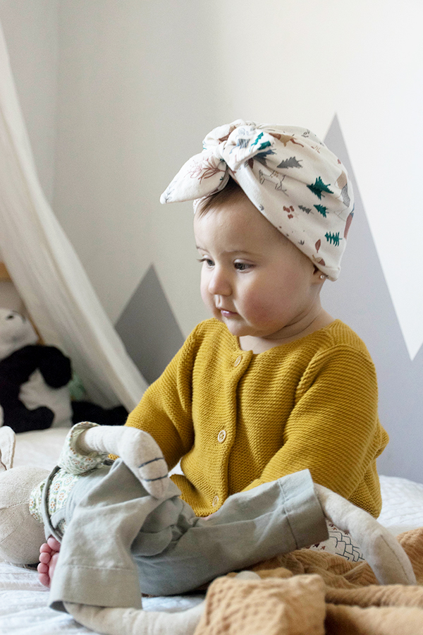Además como veis en las fotos…. con la tela que me sobró hice un turbante para Olivia, os pude enseñar un avance por instagram y muchas ya me habéis pedido que os enseñe hacerlo así que en breves espero poder hacer otro tutorial con un modelo de niña y otro modelo para adulto.