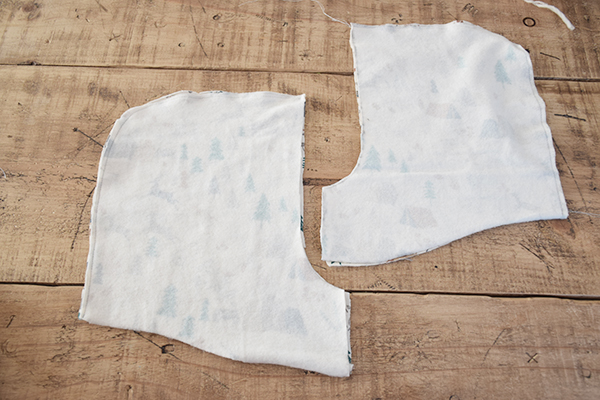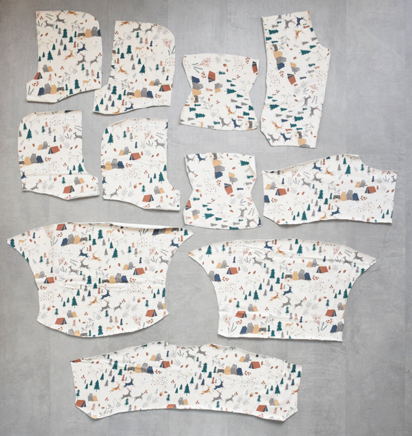 Cortamos todas las piezas por la misma marca, sin dejar margen, porque los patrones ya tienen en cuenta los dobladillos.