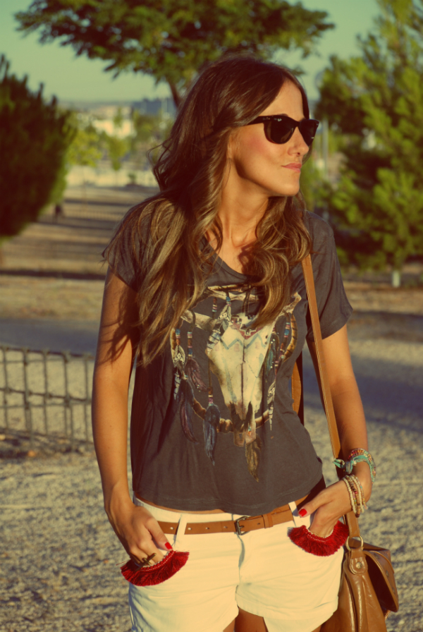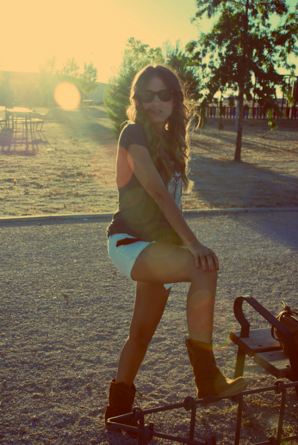 Como os prometí en el post de DIY: Customize your shorts, hoy os enseño el resultado del DIY en un look muy cómodo y con aires del lejano Oeste.