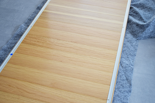 Tanto los perfiles, como las raíles, los hemos pintado con spray chalk blanco y hemos barnizado con un esmalte incoloro.