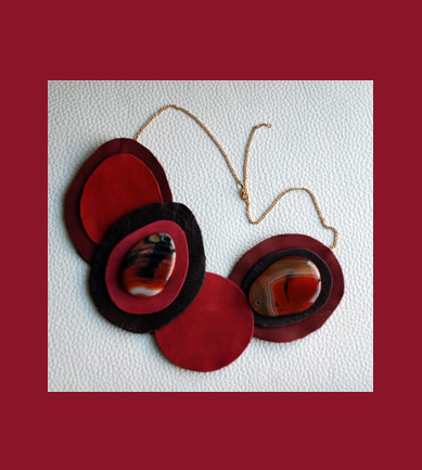 Collar Babero EssaouiraInspirado en este pais, en sus pieles, piedras, su cultura….. he creado este collar. Las piedras las pude conseguir en el zoco y lo tuve claro en cuanto las vi!!! Collar babero me inundó la cabeza!!! jajaja