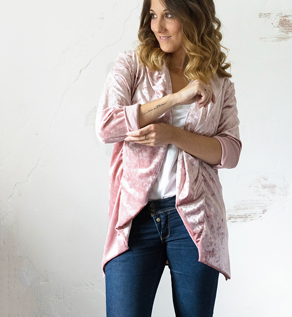 Escogí una tela en terciopelo, color rosa nude, o maquillaje que es una maravilla, el tacto es super suave y calentito, pero como buen terciopelo que es, tiene otra cara mas brillante y si no tienes cuidado a la hora de montar las piezas puedes parecer un rey mago como dice mi querida Aurea de I am a mess que además ha escogido la misma tela que yo en color gris y ha realizado un precioso kimono para estar por casa. Pincha en su enlace y cotillea, que le ha quedado precioso!