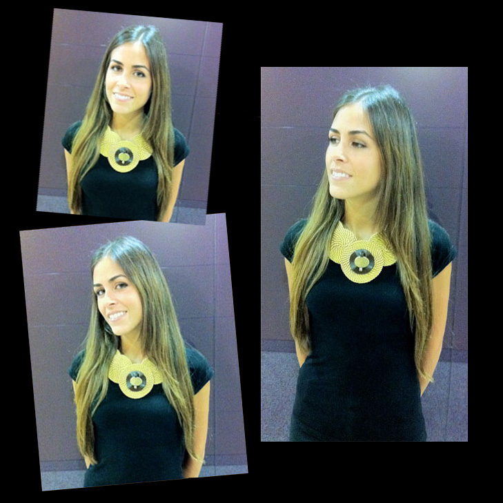 Martina me pidió hace dos semanas un Collar Babero Gold y se hizo estas fotos, me las envió y como podéis ver le queda fenomenal, esta guapísima y lo sabe combinar perfectamente.