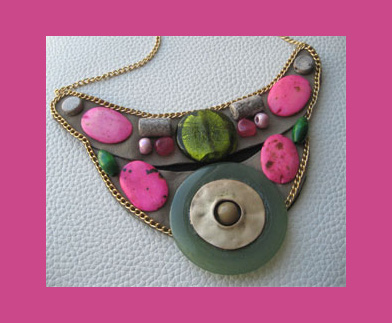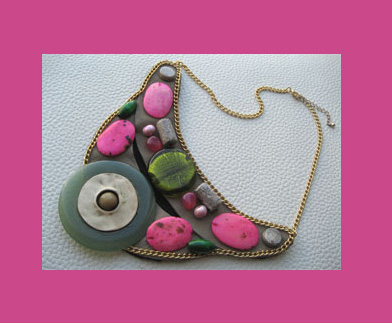 Pero me faltaba mi pieza fetiche, así que hice otro collar babero con la combinación de estos colores.