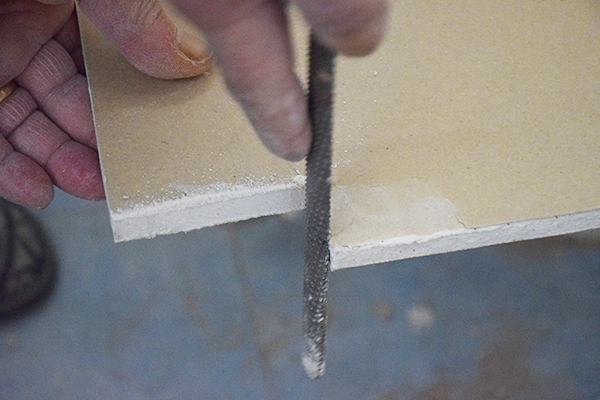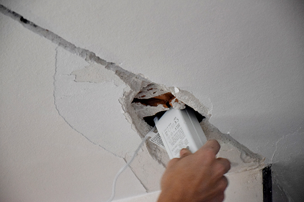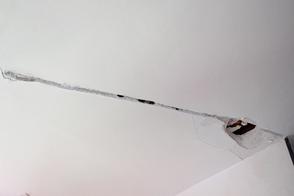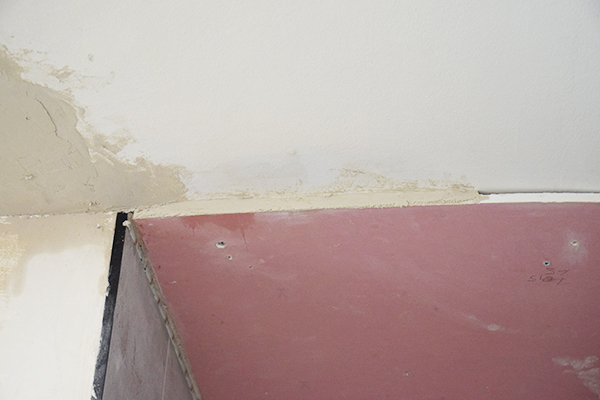 Echamos yeso en toda la roza del techo y en la cara visible del pladur para tapar la ranura que se crea de la unión con el techo. Posteriormente lijaremos y pintaremos.