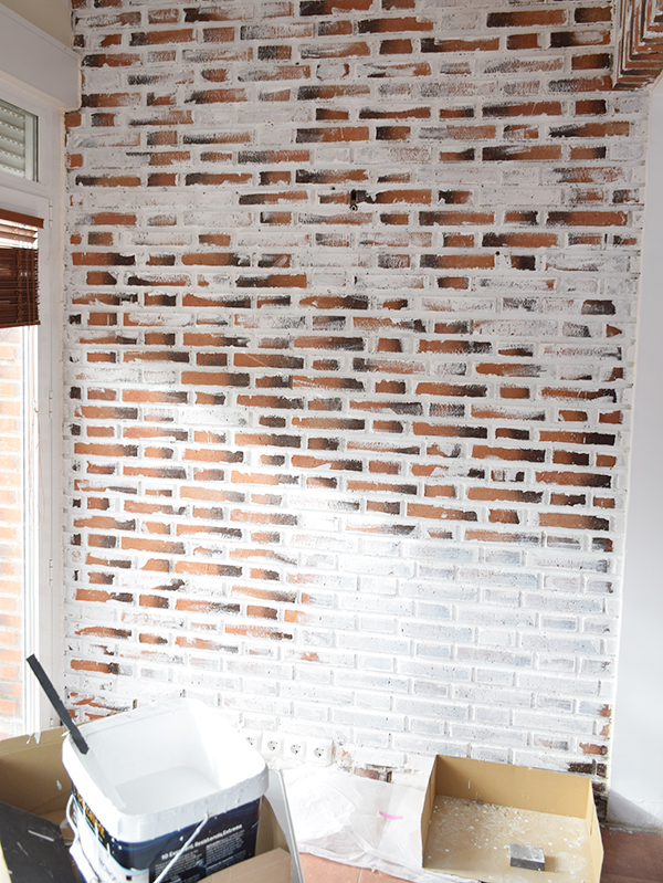 En cuanto vi esa pared de ladrillo en mi salón se me hicieron los ojos chirivitas, me encanta ese estilo rustico-industrial, aunque el color no me fascinaba sabía que la podíamos dejar preciosa.