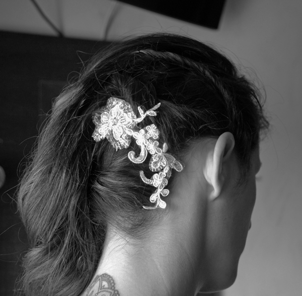 Esta vez escogimos melena suelta hacía un lado con una peineta con bordado blanco a juego de los zapatos que ya os enseñé en el post anterior.