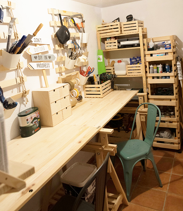 En principio es una sala que hay en el sótano y que sólo estaba de paso para acceder a la bodega, sin ventanas y sin ningún provecho, hasta que se me ocurrió convertirlo en el cuarto de herramientas y a día de hoy me parece la estancia mejor aprovechada.