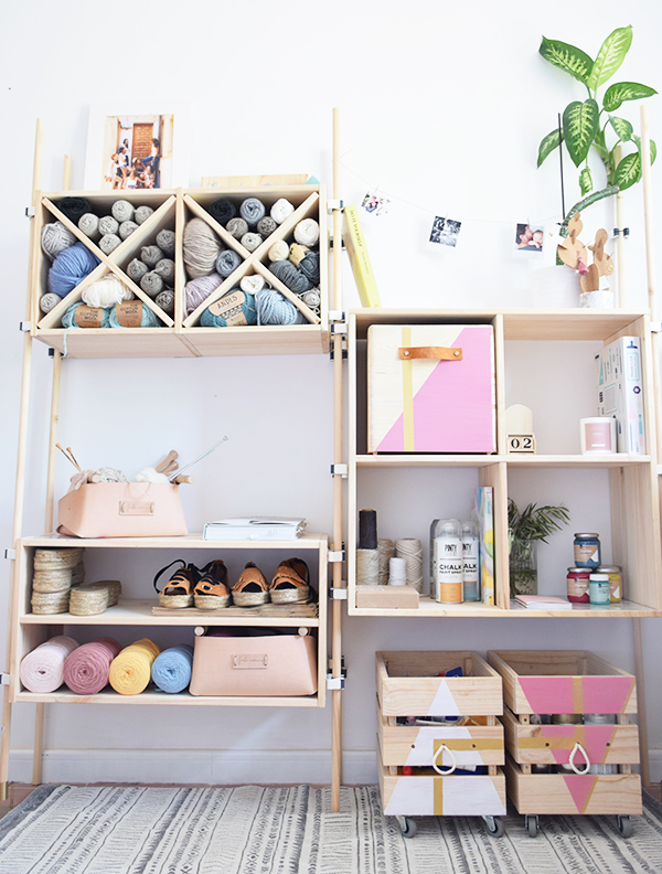 Esta estantería es preciosa precisamente por el color natural de sus cajas, Astigarraga lo sabe bien y por eso no están tratadas, pero pequeños toques de color para dejar nuestro sello personal hará que se diferencie de todas la demás creando un mueble único.
